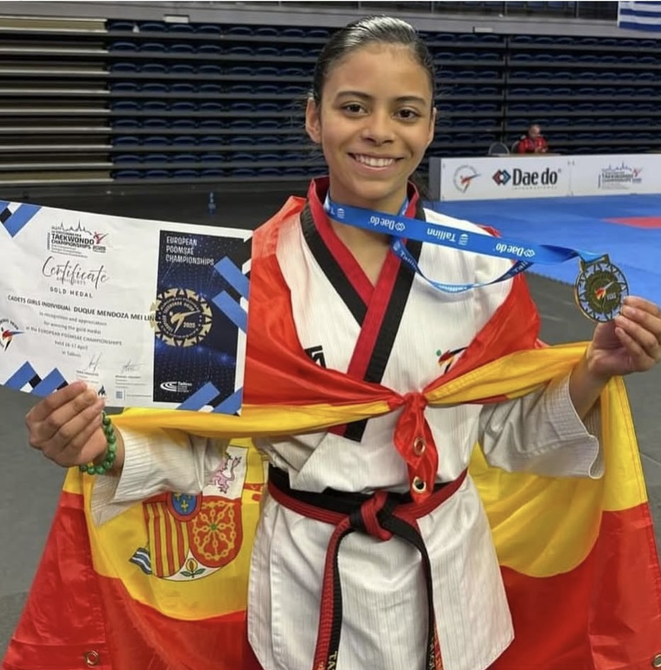 Mei Ling Duque Mendoza, campeona de Europa en la categoría cadete, modalidad de poomsae, en el Campeonato de Europa, celebrado el 16 y 17 de abril en Tallin, Estonia.